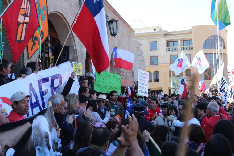 SISTEMA DE REPARTO. Pese a que el Gobierno anunció un importante número de reformas al actual sistema de pensiones, como el aumento en un 5% en las cotizaciones con cargo al empleador a fin de implementar un pilar de ahorro colectivo solidario y cambios regulatorios, como modificaciones en las comisiones de intermedicación y en la composición de los directorios, los representantes de No+AFP en la región criticaron las propuestas. “Lo que se plantea es mantener el sistema de AFP y el abuso empresarial, por ello hacemos un llamado a seguir luchando contra el sistema y a organizarse y ser parte de la lucha”, dijo Johanna Carrasco.