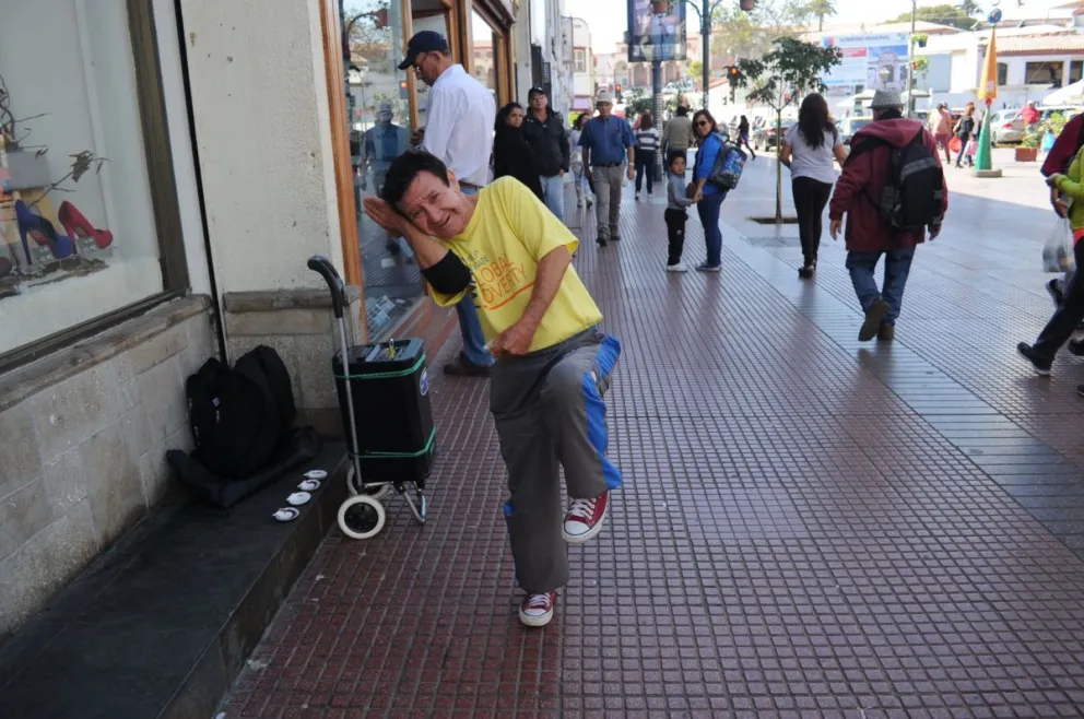 “Para que me resulte, le pego con las yemas de los dedos, y no las sostengo con nada más. Por eso requiere técnica, y a eso hay que sumarle que yo me dedico a bailar con la gente. Lo bueno es que hasta los carabineros me autorizan”, sostiene este popular personaje al que no hay permiso que pueda retirarlo de la memoria colectiva.