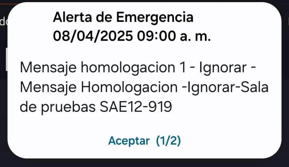 A través de un comunicado oficial, Senapred explicó que “hace algunos instantes se envió un mensaje SAE que corresponde a una prueba realizada en la sala de homologación de SUBTEL, la cual fue recibida por algunos equipos móviles de algunas compañías telefónicas”.