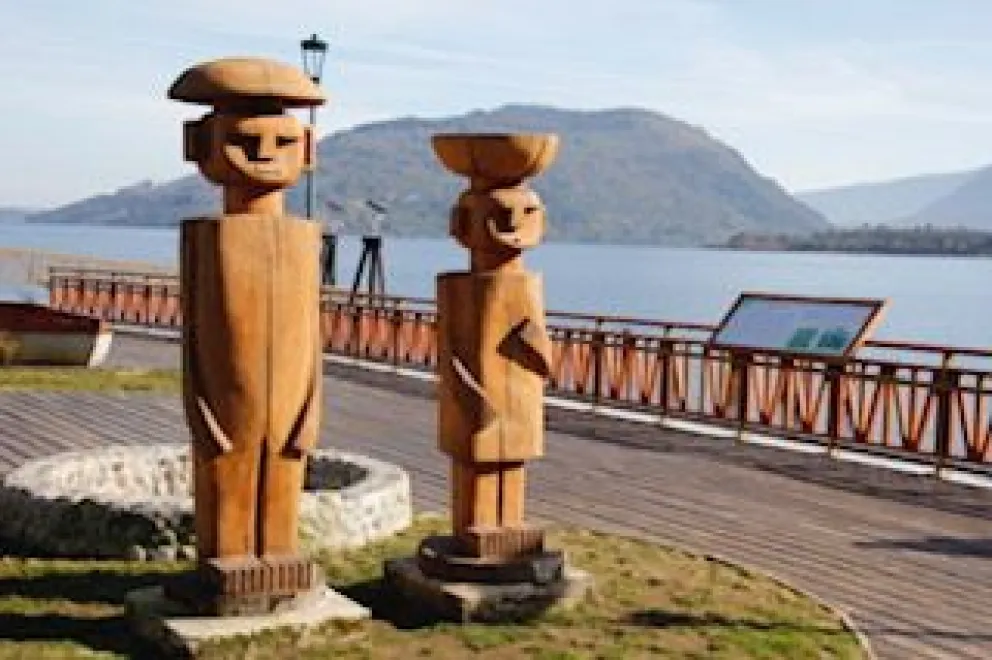 A tan sólo un kilómetro antes de llegar al pueblo de Futrono hacemos una primera parada en un hermoso mirador inaugurado hace poco, el cual permite gozar de las primeras vistas al lago y alguno de sus islotes. El lugar cuenta con un cómodo estacionamiento y llama la atención una estructura de roca con un techo de madera que otorga algo de sombra. No son muchos los minutos que permanecemos allí, pero lo suficiente para entusiasmarse con lo que viene.