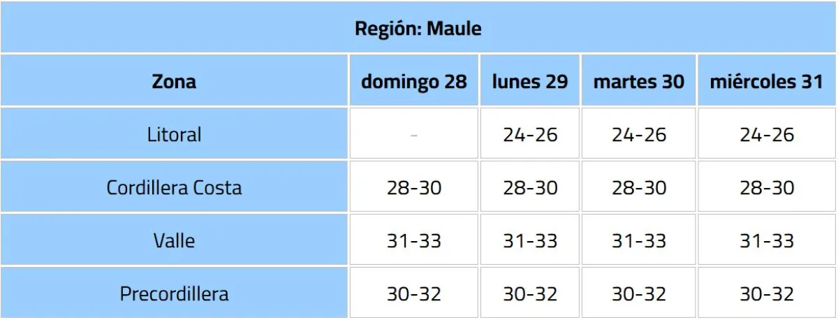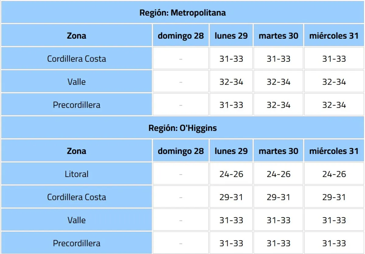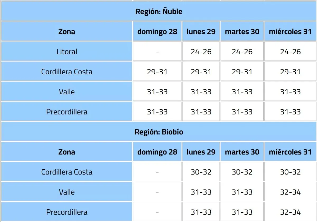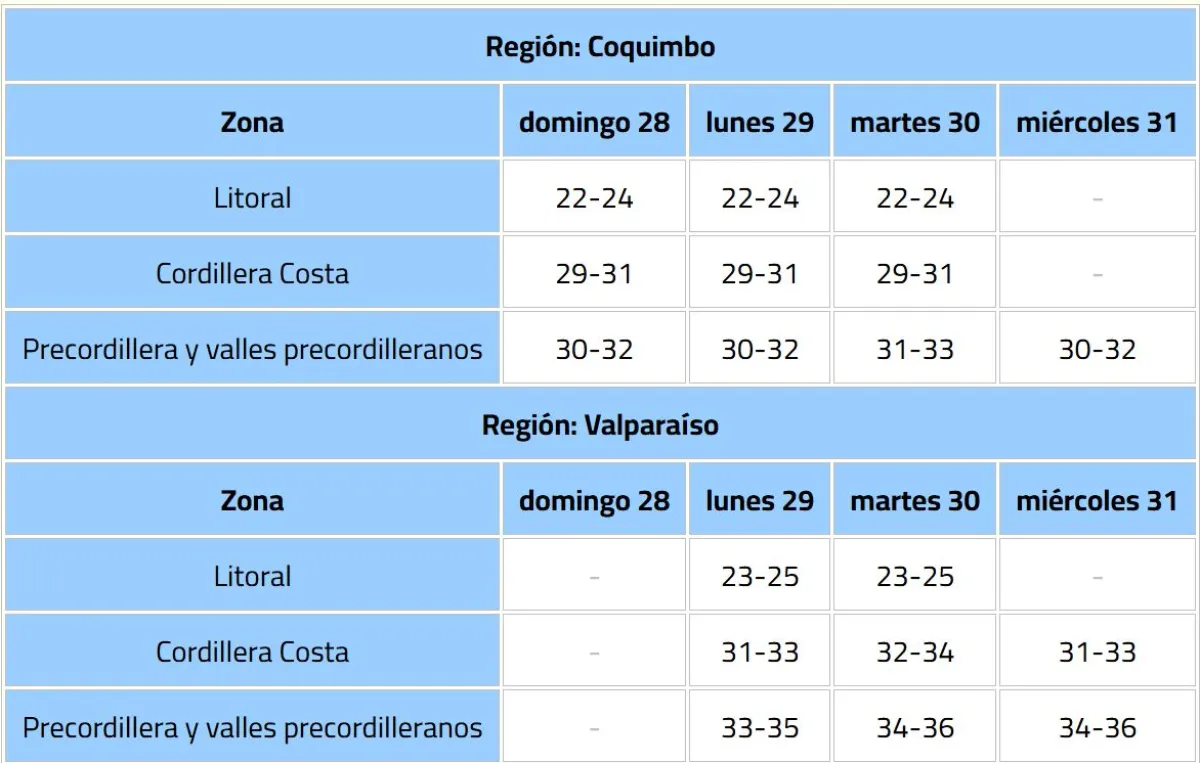 La Dirección Meteorológica de Chile (DMC) emitió un aviso meteorológico por un evento de altas temperaturas, que afectará desde la región de Coquimbo hasta el Bío Bío, con máximas que rondarán los 34° C.