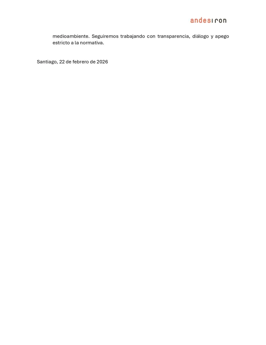 Finalmente, Andes Iron informó que analizará todas las alternativas jurídicas disponibles dentro de la institucionalidad, afirmando que el fallo no estaría respaldado por la sentencia de la Corte Suprema de Chile de septiembre de 2025 ni por la legislación aplicable.